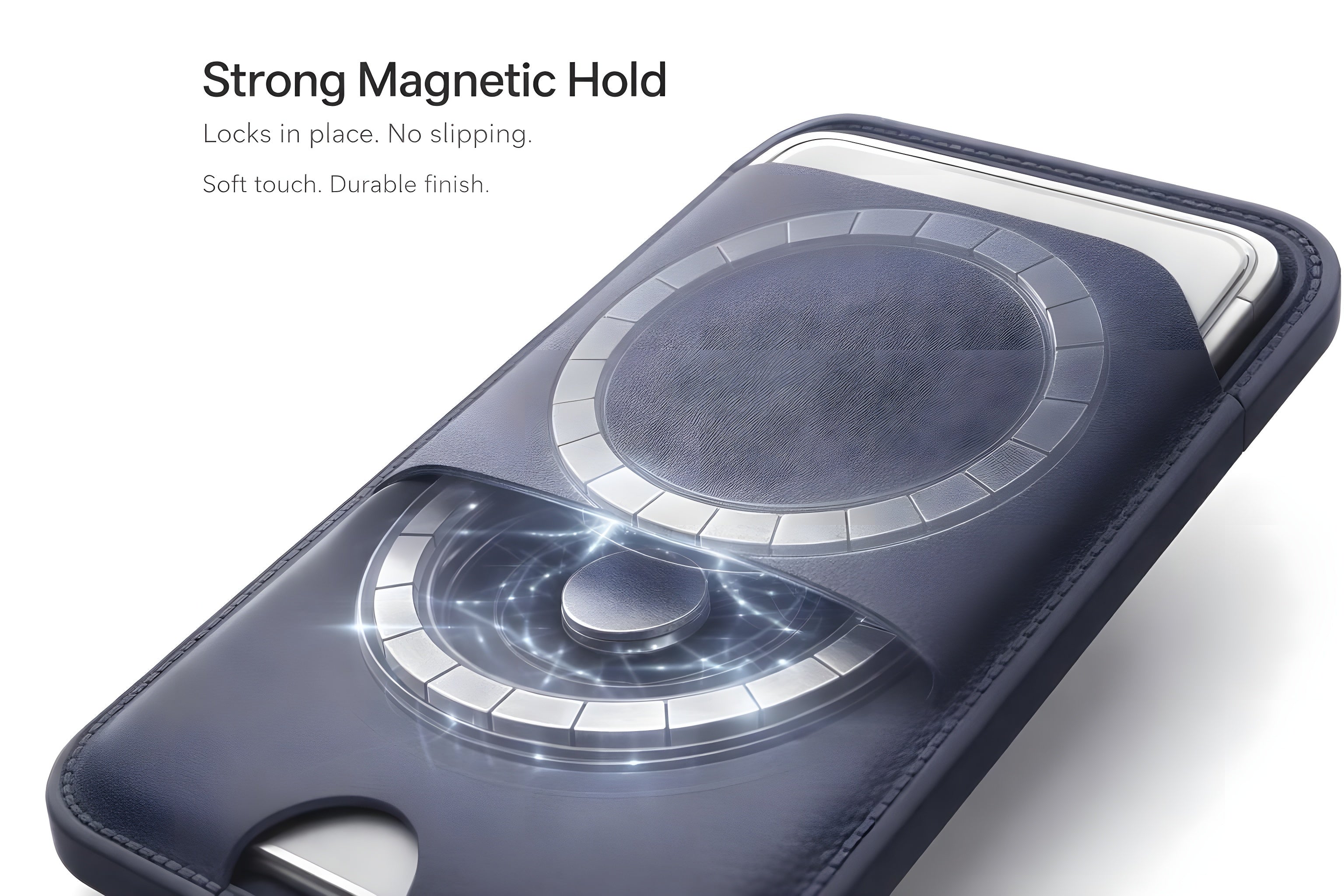 Simply snap it on and keep your cards securely in place — no adhesive, no bulk, no compromise in design.